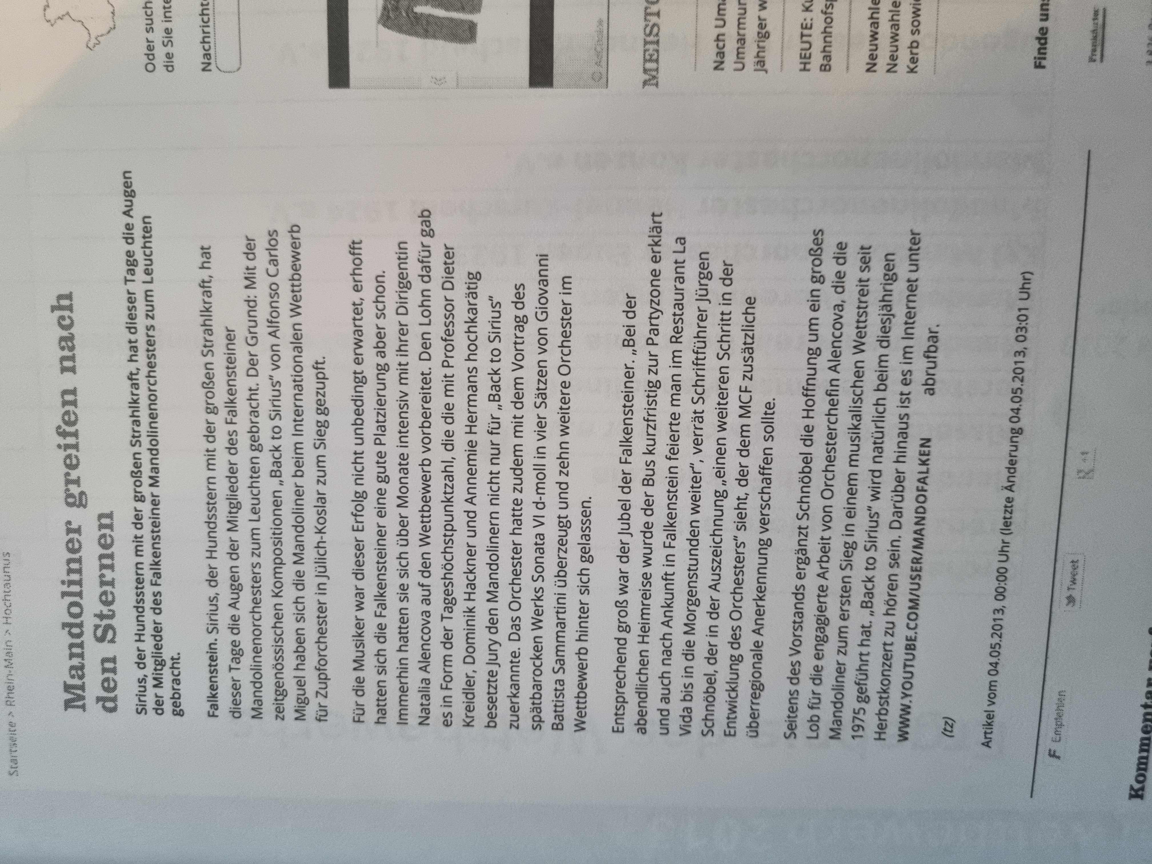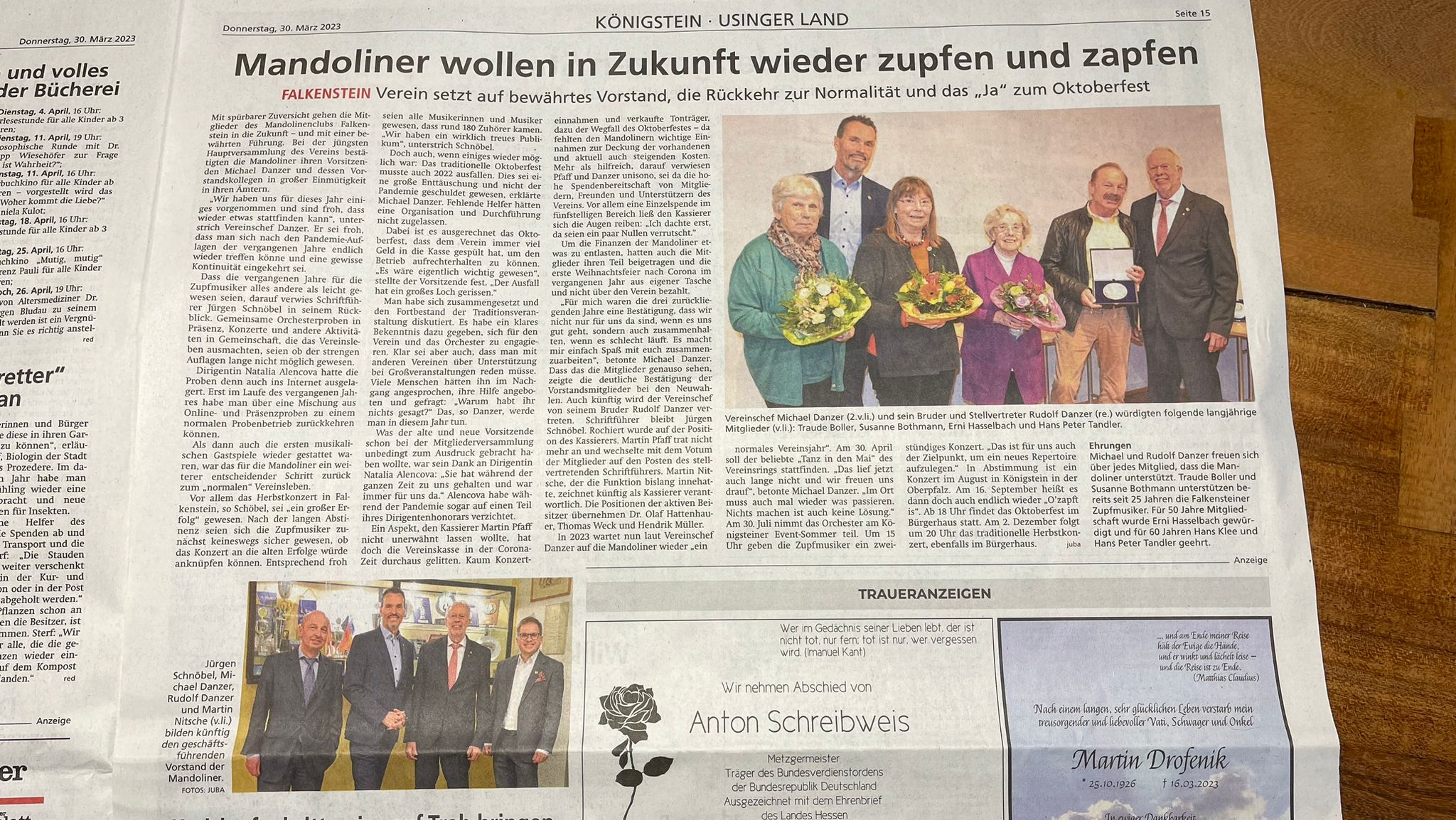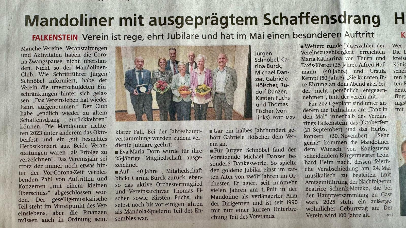 Berichterstattung in den Medien zum Mandolinen-Club Falkenstein e.V.
