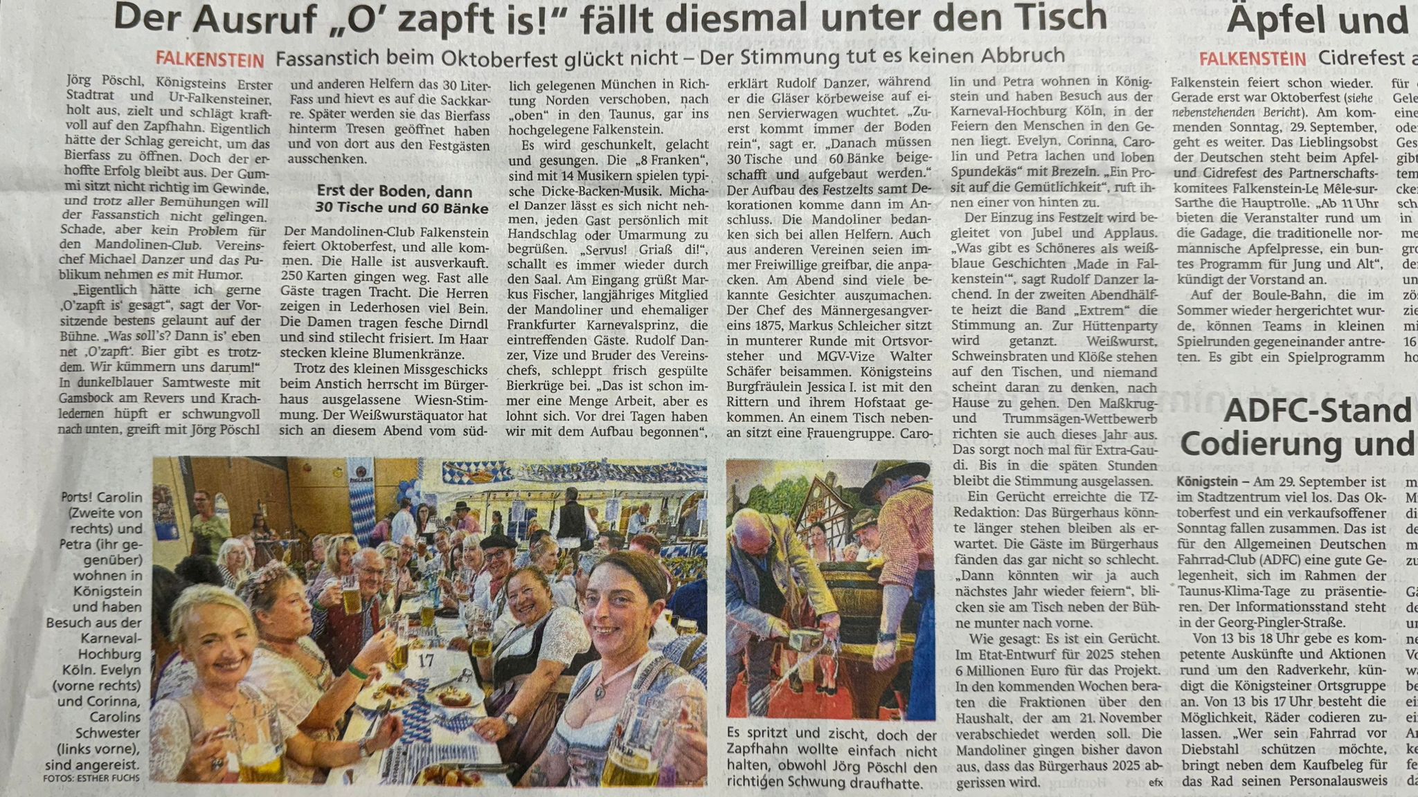Wieder ein toller Abend ! Bericht der Taunus Zeitung vom 24. 09. 2024.