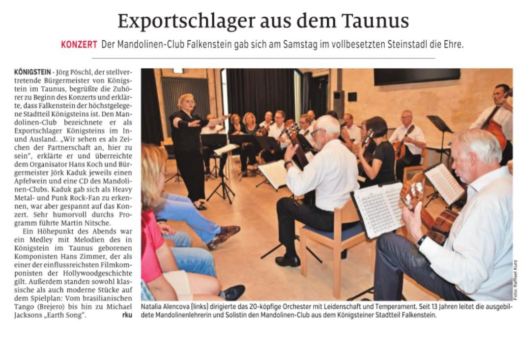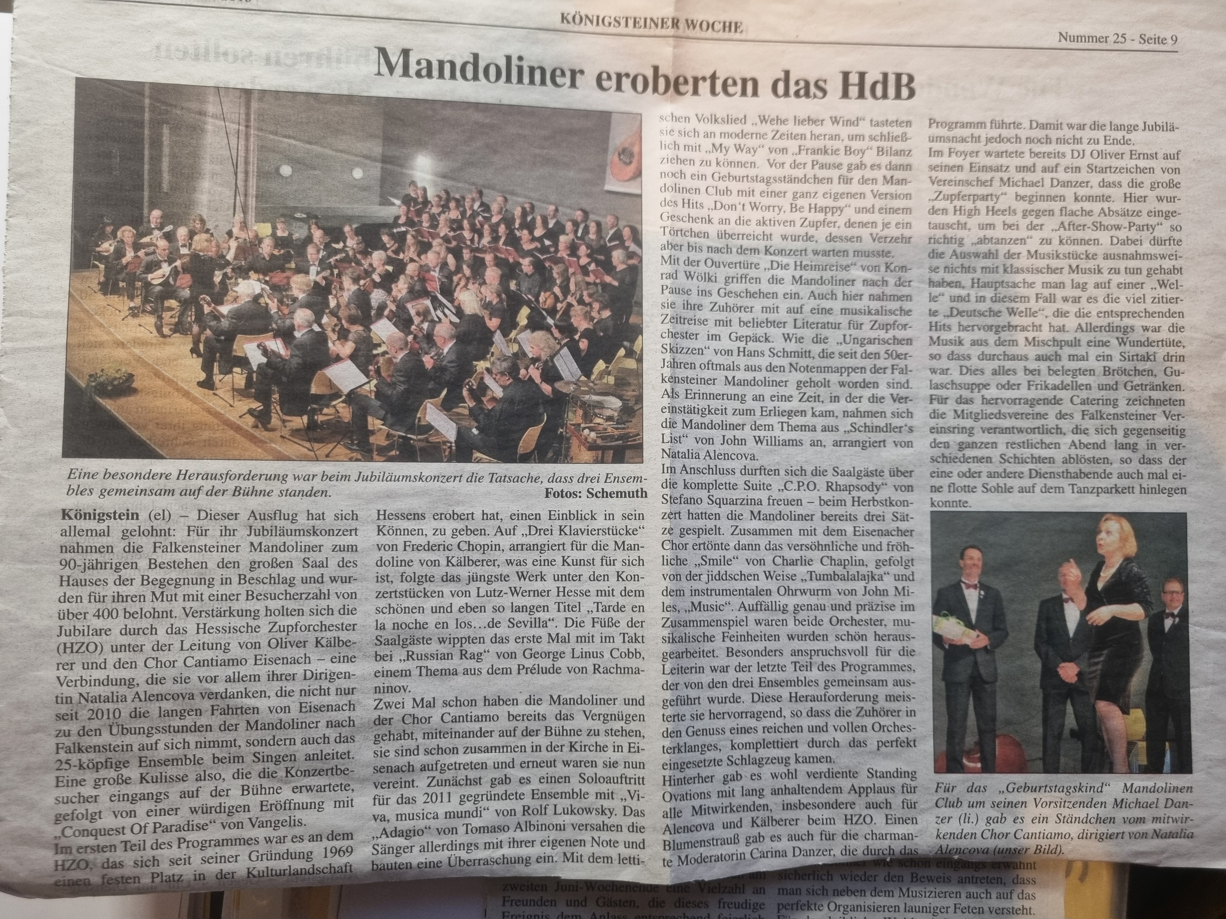 "Mandoliner erobern das HdB", Bericht in der Königsteiner Woche vom 18. 06. 2015