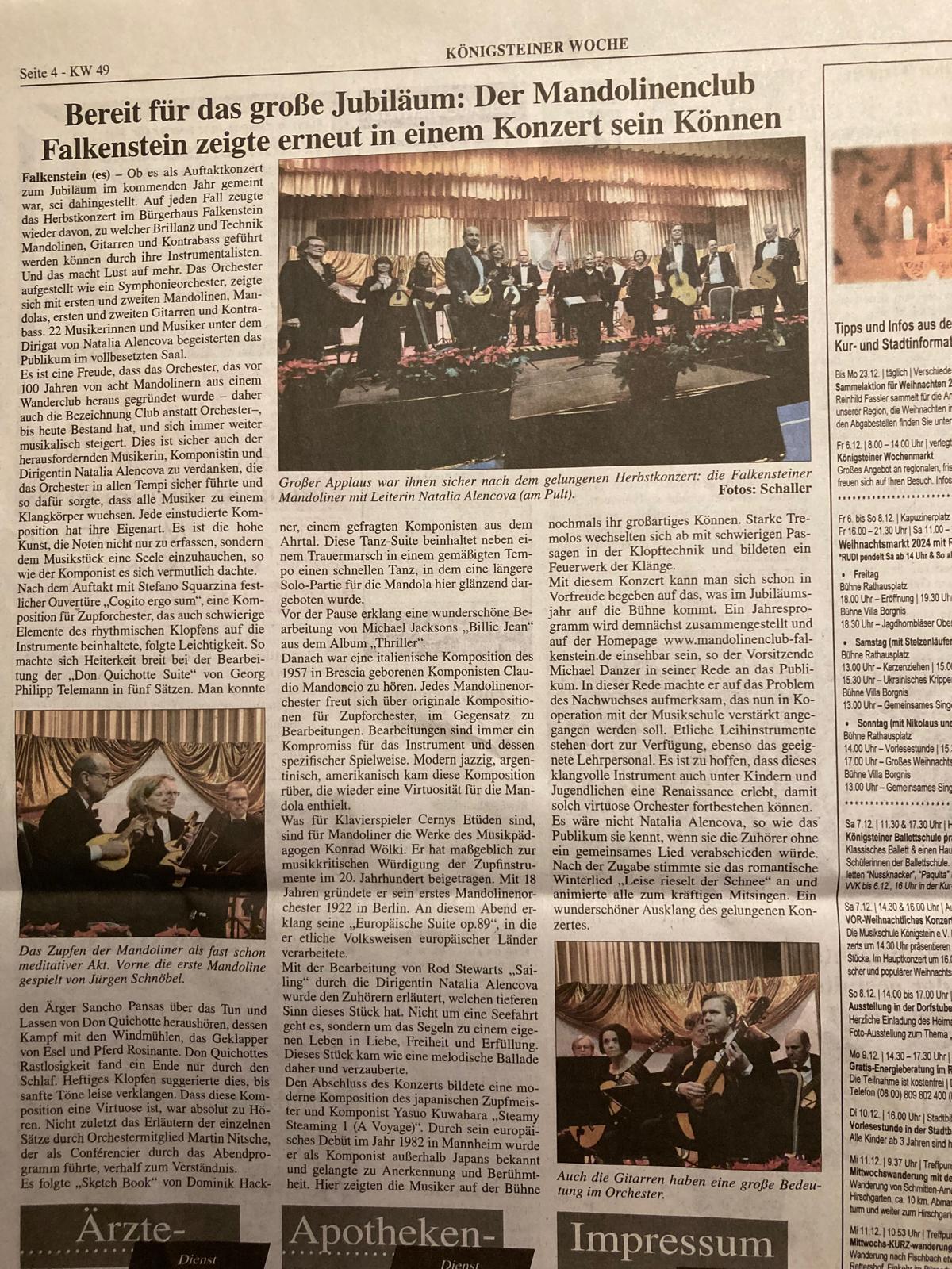 Bericht zum Herbstkonzert, Königsteiner Woche vom 5. 12. 2024